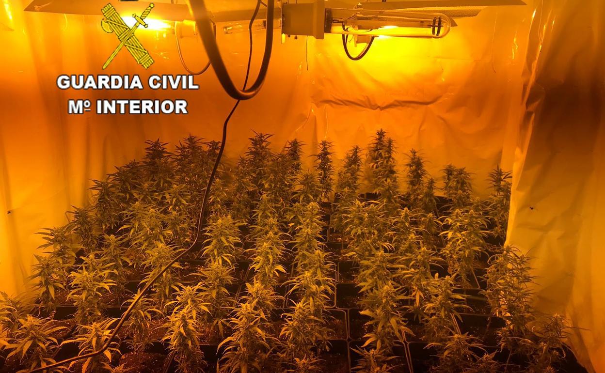 La Guardia Civil detiene a tres personas y decomisa 410 plantas de marihuana en una casa deshabitada de San Miguel de las Dueñas