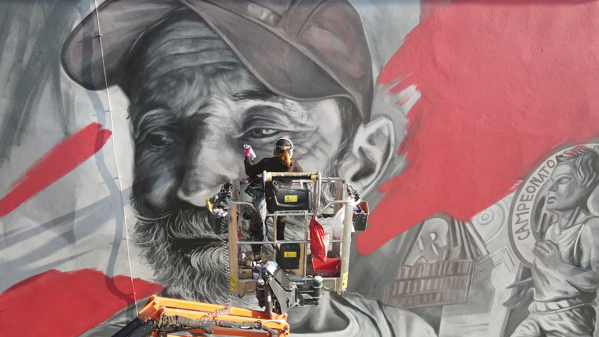 Daniel Eime, portugués de nacimiento, es considerado como “un maestro del stencil”, pero siempre le da su sello particular a la técnica. Licenciado en Escenografía, poco a poco fue centrándose en el arte urbano. Sus murales a gran escala y sus imágenes son sus señas de identidad.